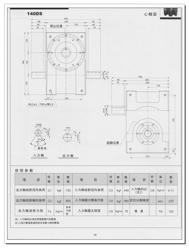 入力轴允许的径向载荷:440kgf